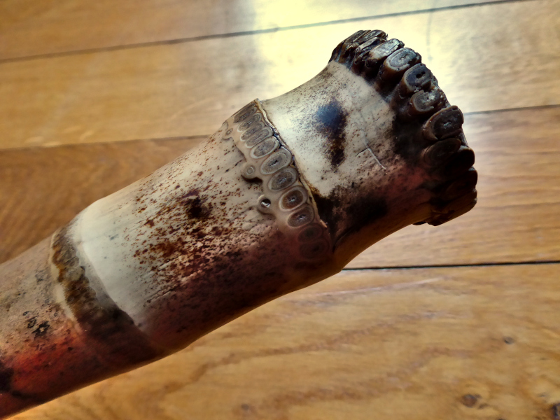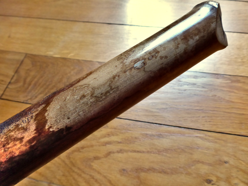 There are four bindings (soon replaced by inlaid rattan ones for better looking) that prevent cracks appeared during the straightening process from getting worse.