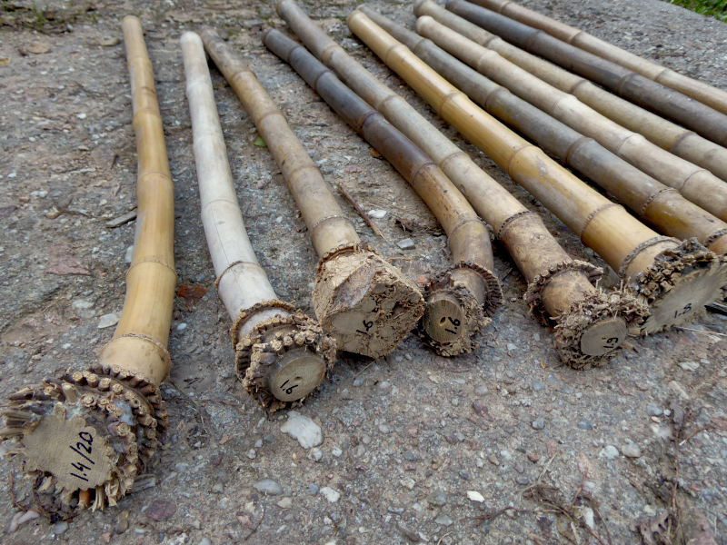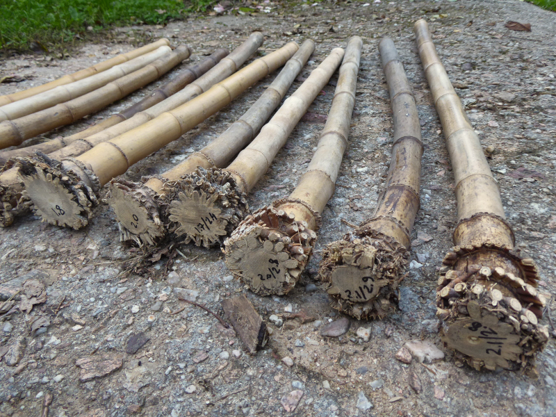 Sur les photos, les bambous sont numérotés de 1 à 10 de gauche à droite.