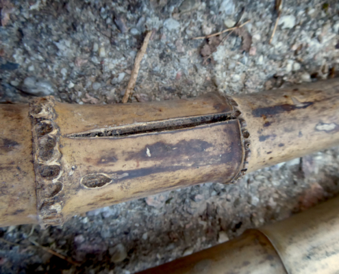 On peut toujours fabriquer un shakuhachi dans un bambou qui présente une ou plusieurs fentes (Je le fais moi même parfois !), il suffit de bien le ligaturer.N’hésitez pas à me contacter pour plus de précisions.